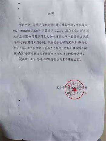 冠縣現(xiàn)代漁業(yè)園區(qū)提升建設(shè)項(xiàng)目廢標(biāo)公告