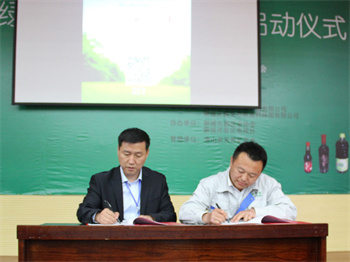 (山東澤地萃生物科技有限公司總裁許衛(wèi)國(guó)與聊城正信生態(tài)農(nóng)業(yè)科技園有限公司總經(jīng)理王宗峰簽署合作協(xié)議)