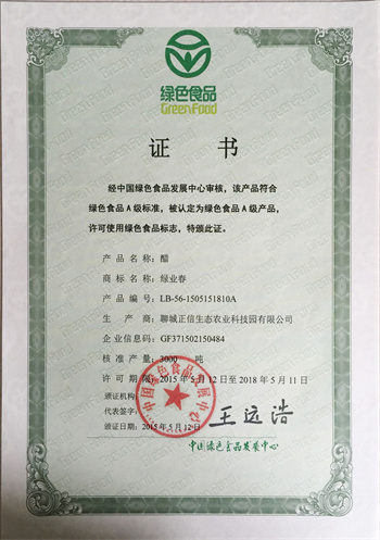 5月26日,正信生態(tài)農(nóng)業(yè)科技園“綠業(yè)春”醬油、食醋被中國(guó)綠色食品發(fā)展中心認(rèn)定為綠色食品“A級(jí)”產(chǎn)品,并許可使用綠色食品標(biāo)志。 “綠業(yè)春”產(chǎn)品自上市以來(lái),一直秉承零添加(零糖 零味精 零色素 零防腐劑)、純自然(傳統(tǒng)工藝 純糧釀造 原汁原味)的理念,今后將繼續(xù)嚴(yán)把生產(chǎn)安全關(guān),將健康送到千家萬(wàn)戶!