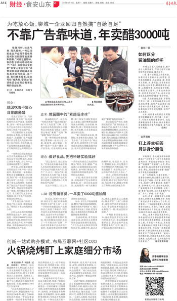 齊魯晚報(bào)“食安山東”:不靠廣告靠味道,年賣醋3000噸 作者:admin 來(lái)源: 點(diǎn)擊:次 字號(hào):大中小 (查看高清大圖) 上一篇:聊城市食品安全暨正信醬醋業(yè)產(chǎn)品推介新聞發(fā)布會(huì)成功舉辦 下一篇:正信醬醋業(yè)參加 第四屆國(guó)際醋酸菌大會(huì)暨世界名醋博覽會(huì) 分享到:QQ空間新浪微博騰訊微博人人網(wǎng)分享到微信朋友圈! ? ?