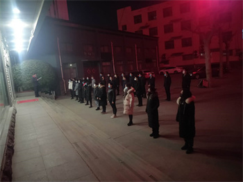 在指令官劉春嶺的一聲號(hào)令下,2月17日晚8點(diǎn),青年公寓員工近50人急步在集團(tuán)院內(nèi)集合。