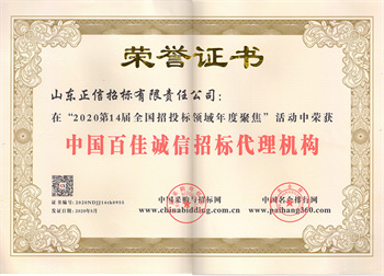 在中國采購與招標(biāo)網(wǎng)、中國名企排行網(wǎng)聯(lián)合舉辦的“2020第14屆全國招投標(biāo)領(lǐng)域年度聚焦”活動(dòng)中,山東正信招標(biāo)有限責(zé)任公司榮獲“中國百佳誠信招標(biāo)代理機(jī)構(gòu)”,集團(tuán)副總經(jīng)理徐海霞榮獲“中國工程咨詢行業(yè)德才雙馨職業(yè)經(jīng)理人”。