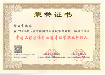 中國采購與招標(biāo)網(wǎng)、中國名企排行網(wǎng)聯(lián)合于2020年3月份舉辦 “2020第14屆全國招投標(biāo)領(lǐng)域年度聚焦”活動(dòng),經(jīng)過企業(yè)書面申報(bào),網(wǎng)上公開投票,資料最終審核等環(huán)節(jié),最終確定獲獎(jiǎng)名單,我公司成功榮獲企業(yè)和個(gè)人獎(jiǎng)項(xiàng)。進(jìn)一步提高了公司實(shí)力和對(duì)外知名度。
