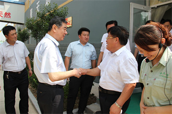 (集團(tuán)董事長(zhǎng)引領(lǐng)王軍民一行參觀廠區(qū))