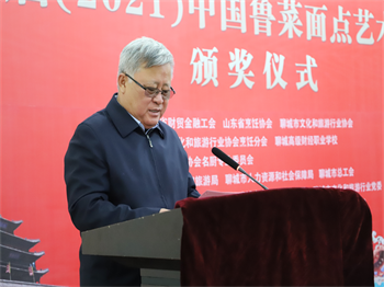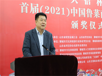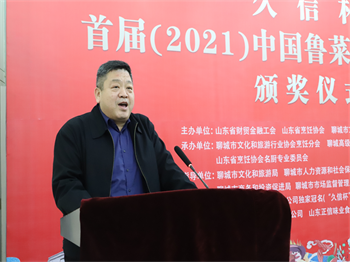 聊城市文化和旅游行業(yè)協(xié)會(huì)常務(wù)副會(huì)長(zhǎng)、秘書長(zhǎng)宋文江同志宣讀“久信杯”首屆中國魯菜面食藝術(shù)大賽表彰決定