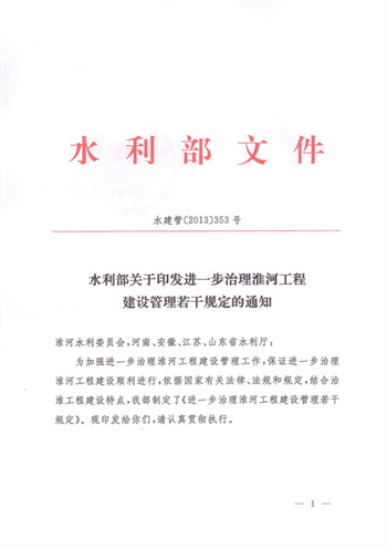 水利部關(guān)于印發(fā)進(jìn)一步治理淮河工程建設(shè)管理若干規(guī)定的通知